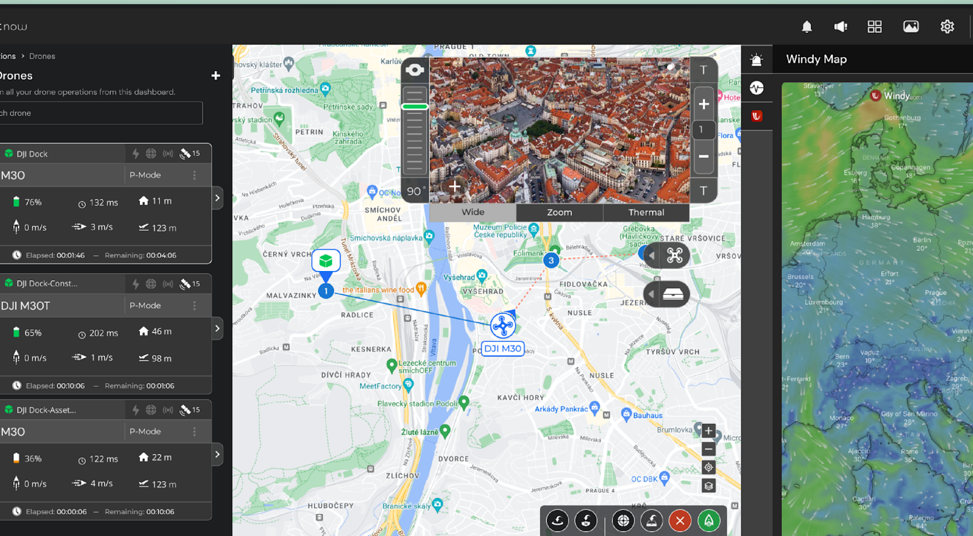 FlytNow integrates with the Windy Weather API to provide accurate weather data and view live data relayed from the DJI Dock’s onboard weather station.