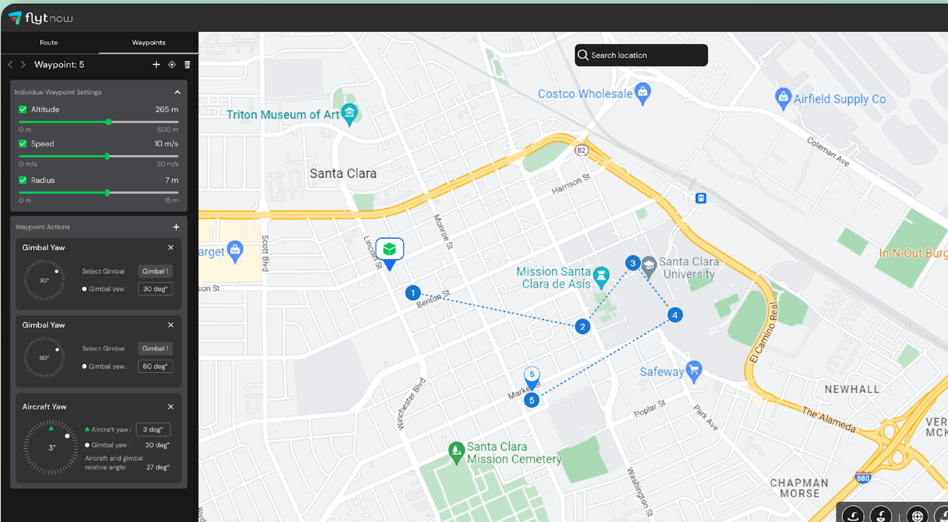 The FlytNow dashboard offers multiple options for controlling the drone and its camera payload.