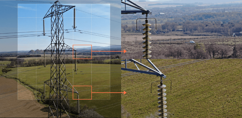 In the below example, it took Aureos just 60 seconds to create this composite image of a pylon - consisting of 35 individual high-res grid images...