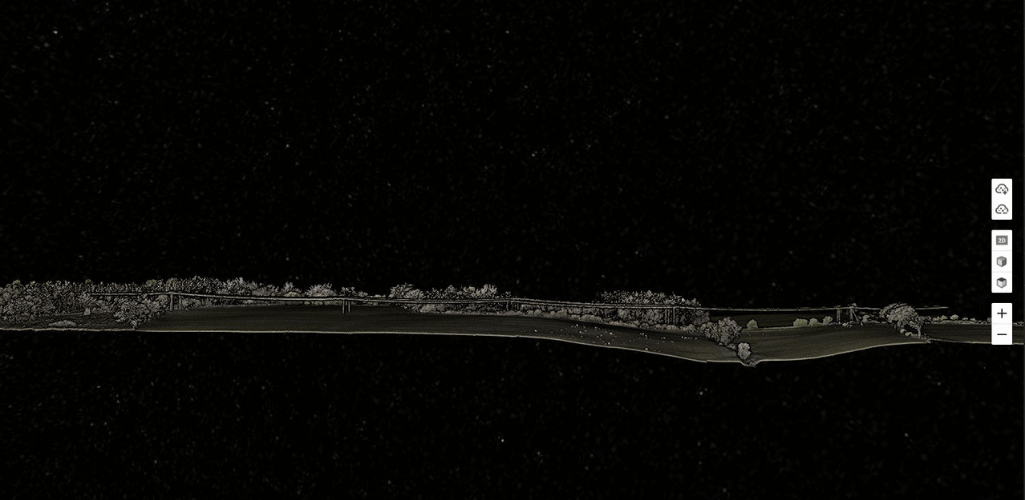 Without a reality model, it is difficult to accurately account for a safety distance between the power lines and buildings in the vicinity during the design phase. LiDAR models also enable measurements between powerlines and vegetation, as this image shows below.