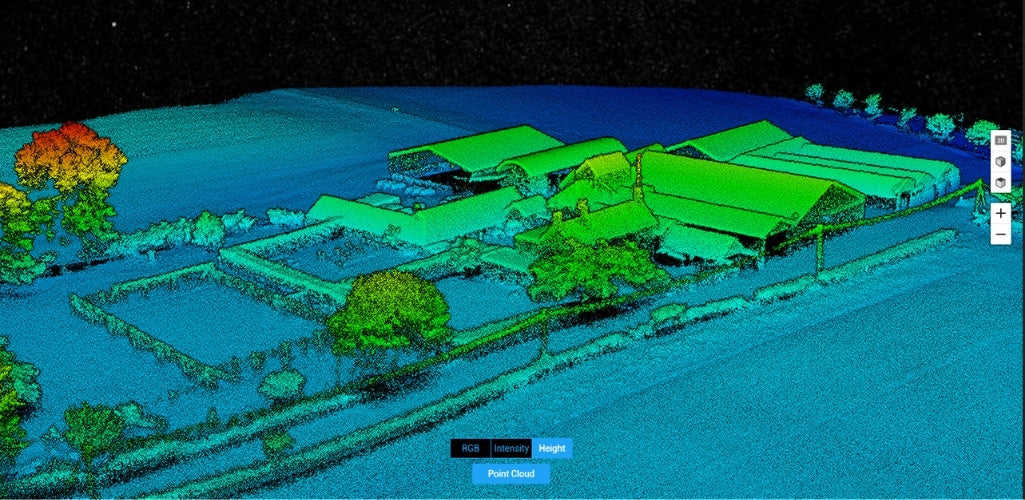 Ben said: "The L1 data sets show a dense and robust model. Even though the camera was fixed at 90°, the L1 was still able to capture sections of the sides of the farm buildings - thanks, in part, to the sensor's 70° field of view.