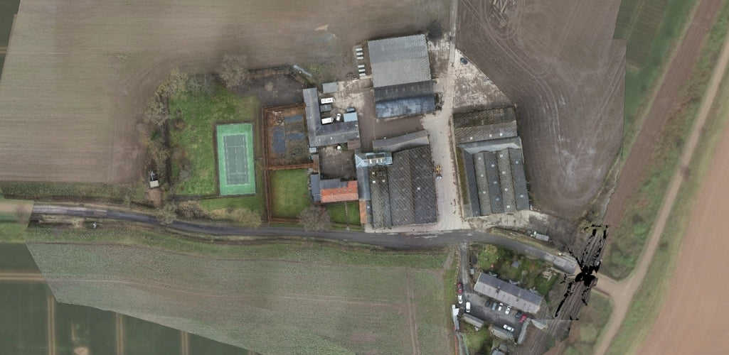 Admittedly, there are areas of the model which aren't quite as comprehensive, such as the sides of the barns, but this is down to the fact that the gimbal was fixed at a 90° angle for the duration of the flight. This made it more difficult to capture a dense set of points to fully flesh out the side profiles of the buildings.