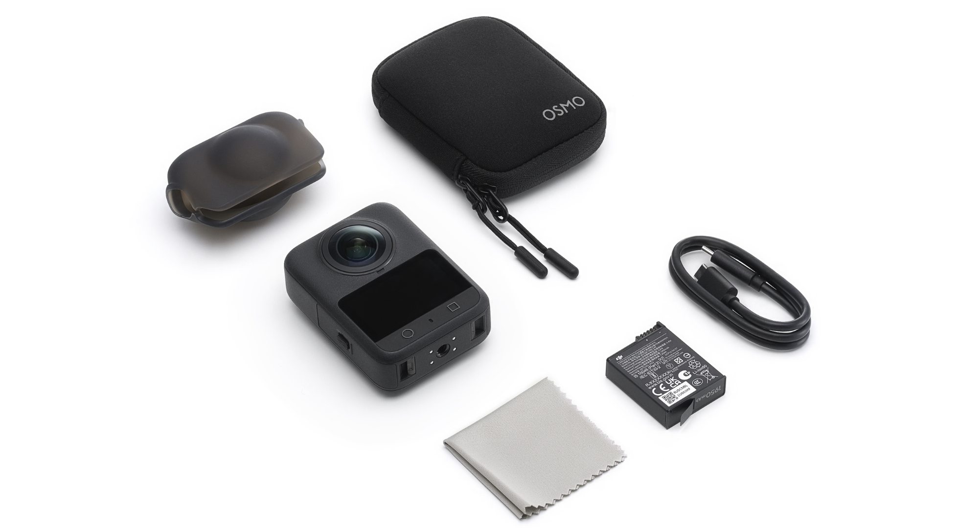 Osmo 360 Standard Combo: Includes the Osmo 360, an Extreme Battery Plus (1950 mAh), a carrying pouch, and essential accessories — perfect for everyday use.