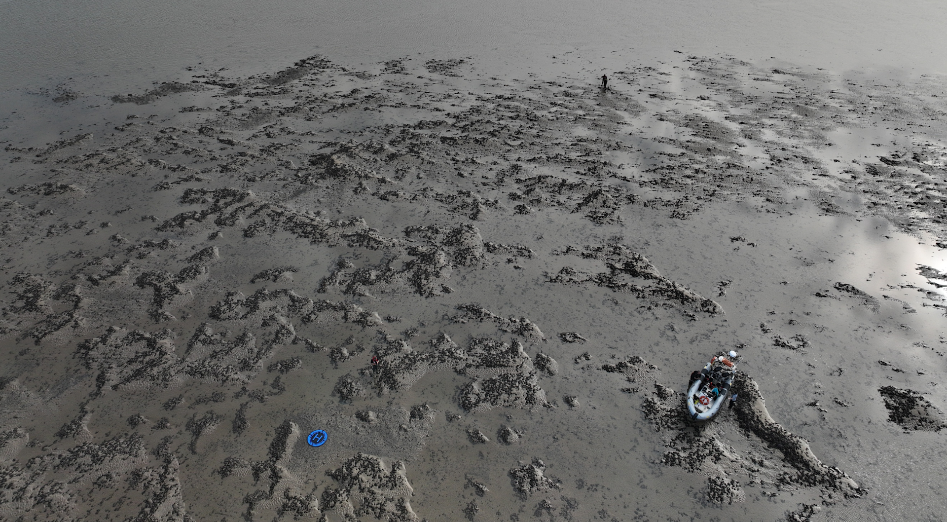 Before using drones, the NWIFCA team accessed mussel beds by quadbike, or by drying a boat out at low water and walking the bed.