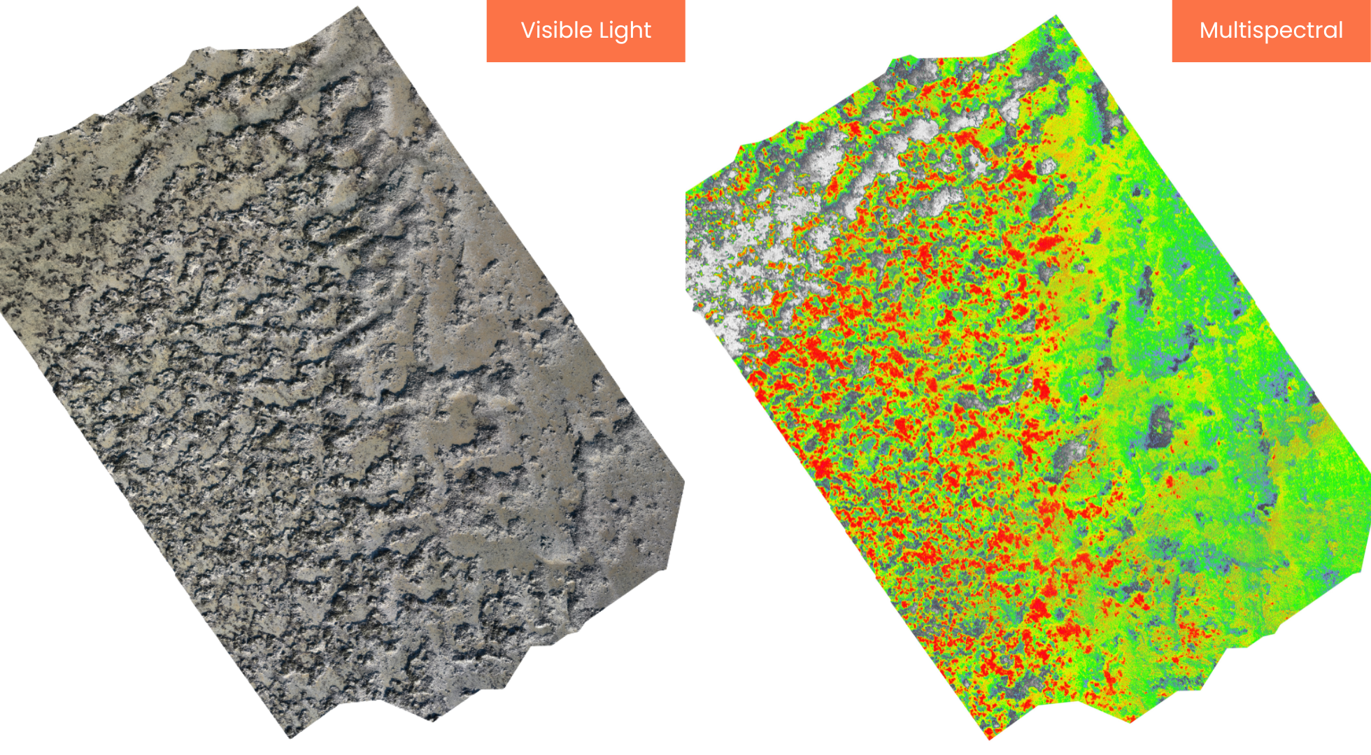 Multispectral data enables the team to distinguish mussel beds from surrounding substrates based on their unique spectral signatures;