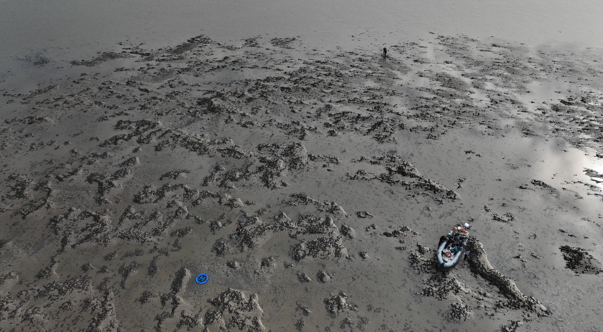 Before using drones, the NWIFCA team accessed mussel beds by quadbike, or by drying a boat out at low water and walking the bed.