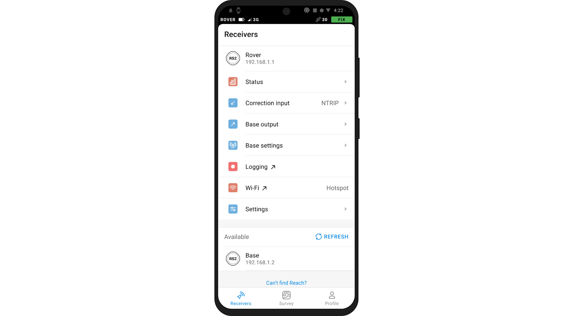 Use Emlid Flow to configure and control your Reach receivers: Available with the Standard and Survey licences.