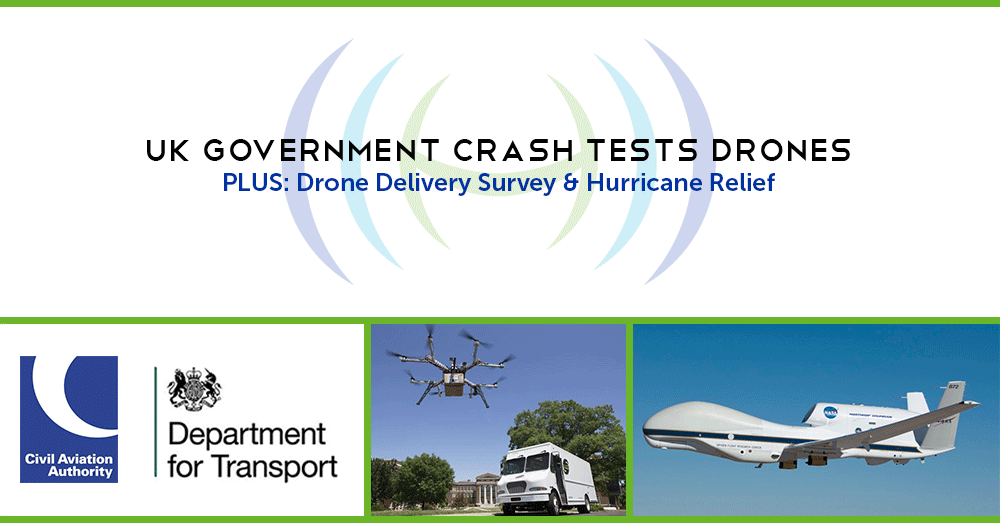 This instalment of drone news takes a look at the UK government's crash tests, a USPS drone delivery survey & how SUAs helped during Hurricane Matthew. ... Read More