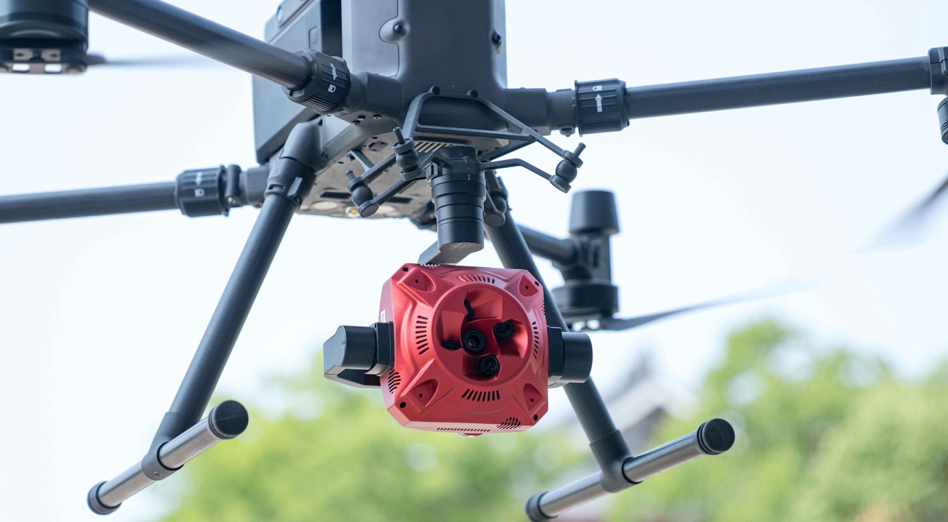 It integrates with the DJI M300 Series and can capture all five angles (ie nadir, left, right, front, and back) during one flight.