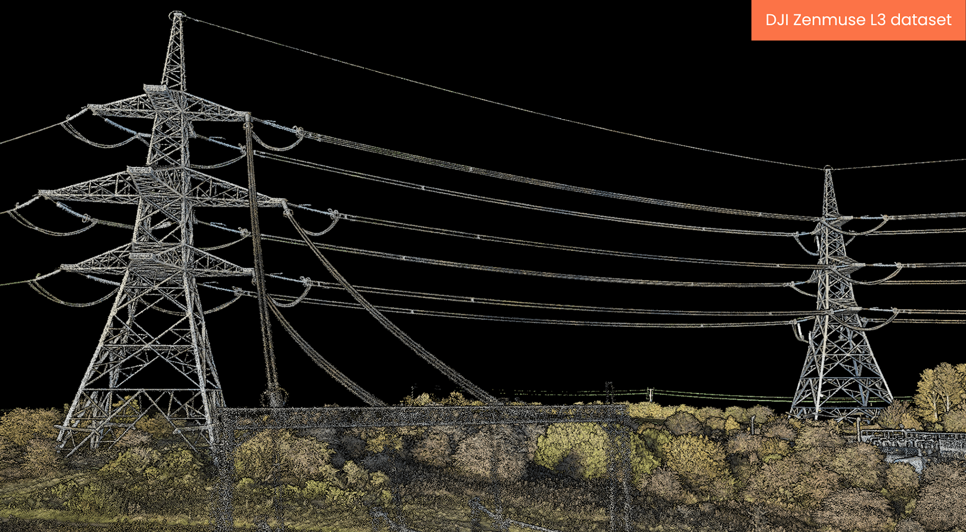 DJI Zenmuse L3 collects detailed datasets, with precise digital reconstructions of utility infrastructure, including thin wiring.