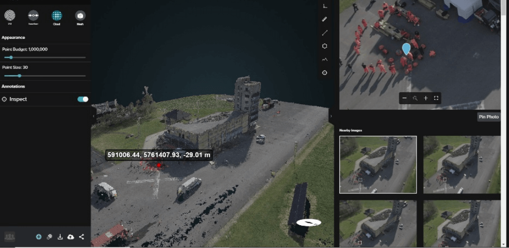 For further analysis, the photo inspection tool within the Esri software enables teams to look at high-resolution images of specific parts of the drone map.