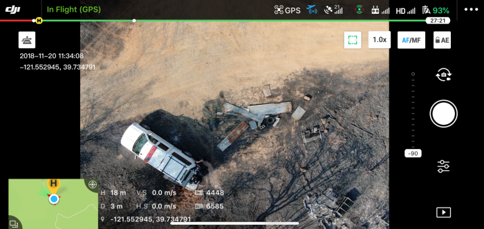 Romeo added: "This was a very effective way of covering a lot of ground and getting very detailed information quickly. Since the Mavic 2 Enterprise also has the ability to zoom in (up to 6x), it was very versatile and we were able to easily identify various objects, such as burned cars, structures and even components within the structures, such as bathtubs."