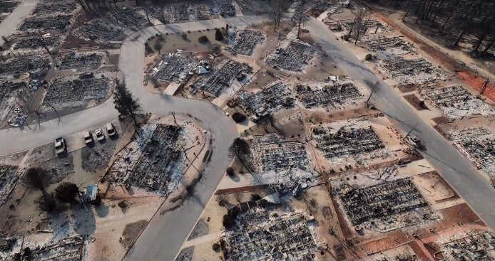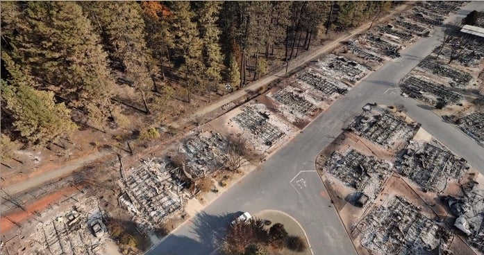 Drone data software package, DroneDeploy, was used to help map the destruction to aid the recovery process in the days leading up to the fire's containment.
