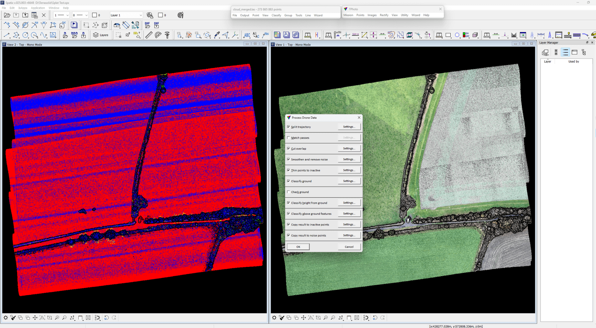 Testing the recently-updated TerraScan Wizard, we took a raw L3 dataset from DJI Terra and conducted cleaning and classification, including: