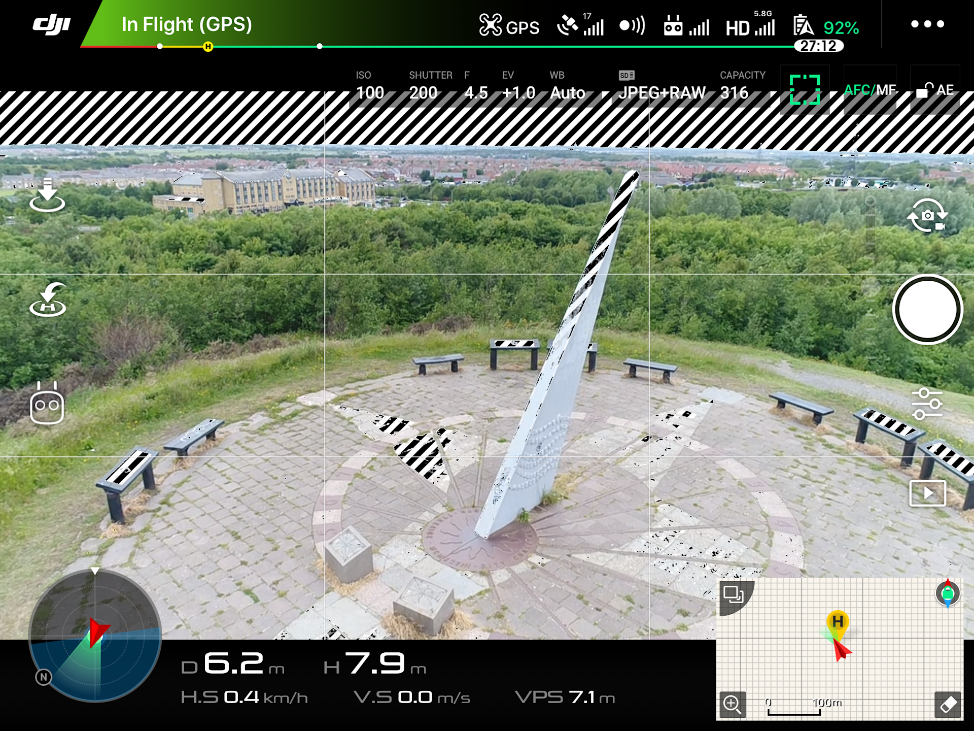 When using your drone for images, it’s recommended you use HDR (High-Dynamic-Range) or AEB (Auto Exposure Bracketing) available on the majority of DJI’s drones. The AEB setting will automatically take either three or five pictures with varying levels of exposure when you press the shutter button. You can then merge the images in post-production, choosing the most effective part of each image for the best exposure. This option gives you control over the end result, creating an image that suits your style. Below is an example of the separate AEB images: