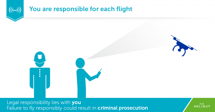 You are responsible for each flight and legal responsibility lies with you. Failure to fly responsibly could result in criminal prosecution.