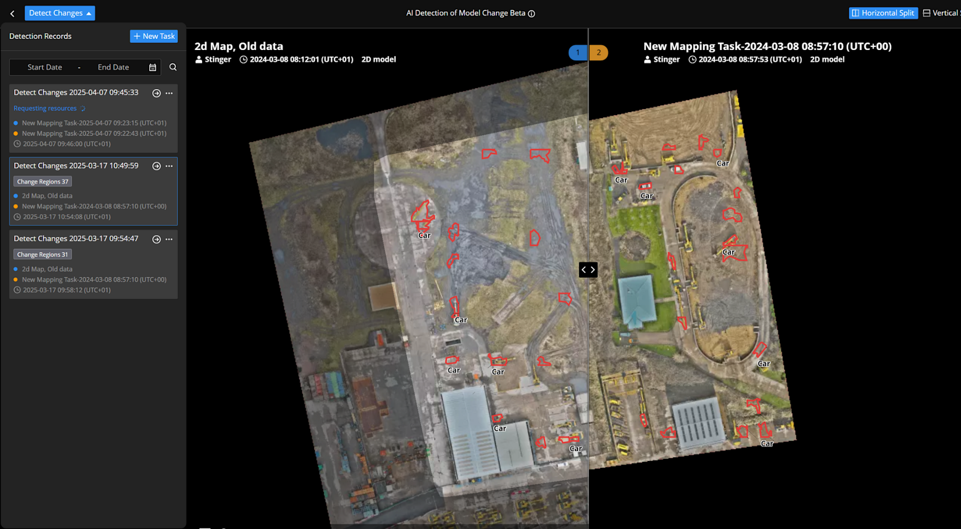 Change Detection: Compares 2D maps over time, highlighting differences for better situational awareness.