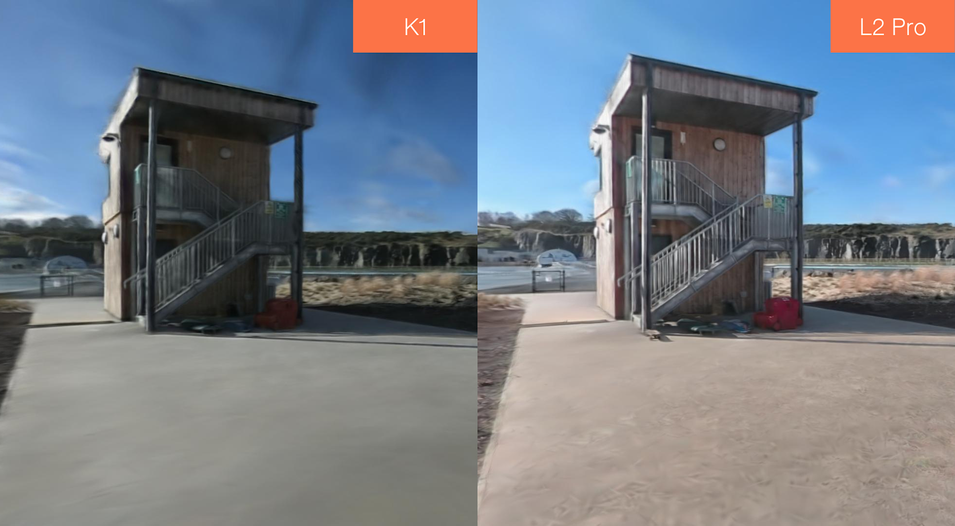 As the videos show, the K1 does a good job, but the L2 Pro comes out on top, offering higher visual fidelity for Gaussian Splatting...
