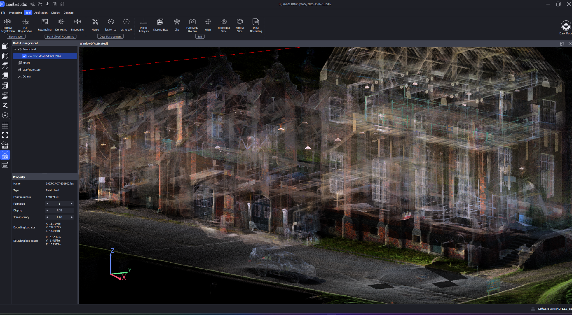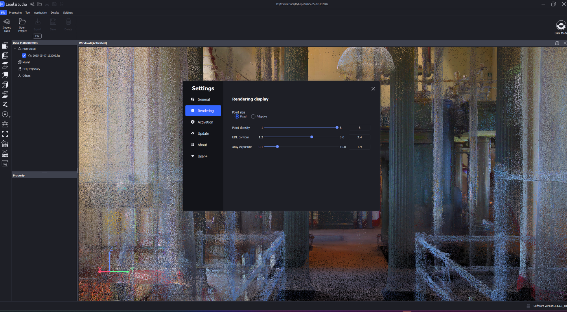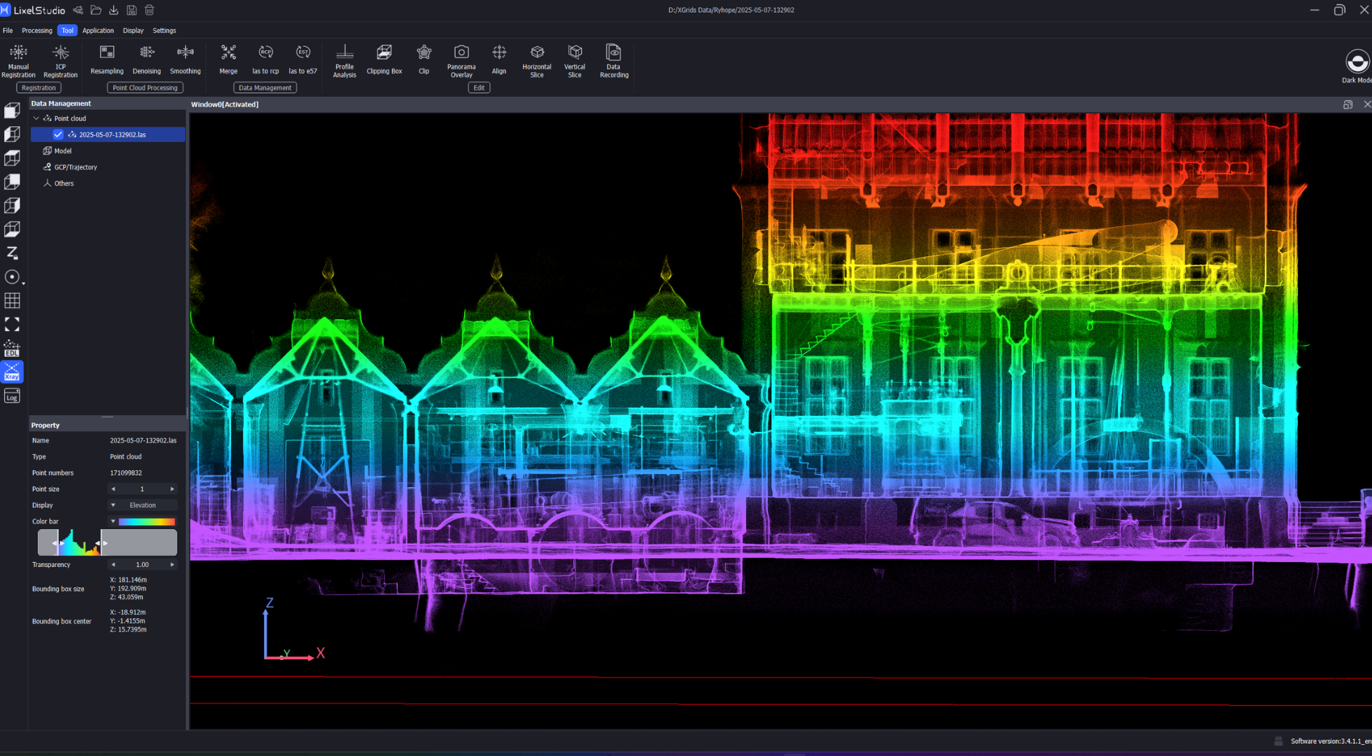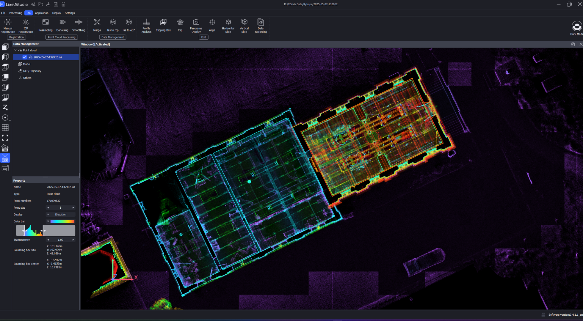 LixelStudio V3.4.1.0 is the latest version of XGRIDS’ point cloud processing software, featuring workflow optimisations, improved tools, and expanded device support.